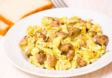 Ingredients: g KetoCal 4:1 Powder Unflavoured g Eggs: Chicken Egg, whole, raw, fresh g Oils: Rice Bran g Mainland, Cheese: Grated, Cheddar, Tasty g Vegetables, fresh: Mushrooms, Button / Common / Flat, raw Directions: