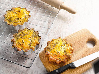 - Filling: Combine the cream cheese, egg, remaining oil, cooked chicken, cheese, sage and stuffing mix in a bowl. Spoon the mixture into the pastry case